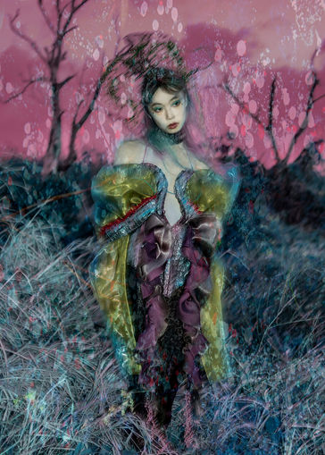 Also, she continues to present her work as an artist. She presents the stories and world views of her dresses in her photographic works.
